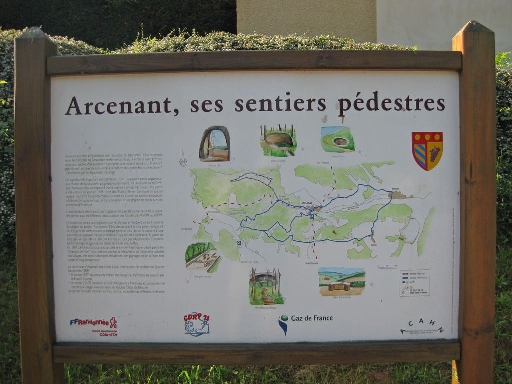 On the south side of the village, I had some trouble finding trail. I had a little trouble finding the GR76 and had to backtrack a bit. But I recovered trail and reached the village of Pernand-Vergelesses at noon. There I had nice break at a well placed picnic table, shown below, before proceeding through the village. The GPS indicates that I covered 4.6 miles this morning.